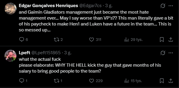 Wiele mówiło się ostatnio o burzliwym początku roku dla brazylijskiej organizacji. Głównym mankamentem włodarzy były problemy finansowe, które dość mocno ograniczały pewne manewry na rynku transferowym. Vasconcellos był jednak zawodnikiem, który angażował się w rozwój swojej organizacji nie tylko na serwerze – według doniesień lokalnych portali felps zgodził się na znaczną obniżkę swojej pensji, czym umożliwił sprowadzenie w szeregi GG HEN1’ego oraz Lukena! Abstrahując już od indywidualnej formy samego felpsa, która w ostatnim czasie była, łagodnie rzecz ujmując, bardzo słaba, to tak krótkie i pozbawione emocji pożegnanie zawodnika, który swoim własnym kosztem pozwolił organizacji dokonać wzmocnień w składzie, jest bardzo zaskakujące.