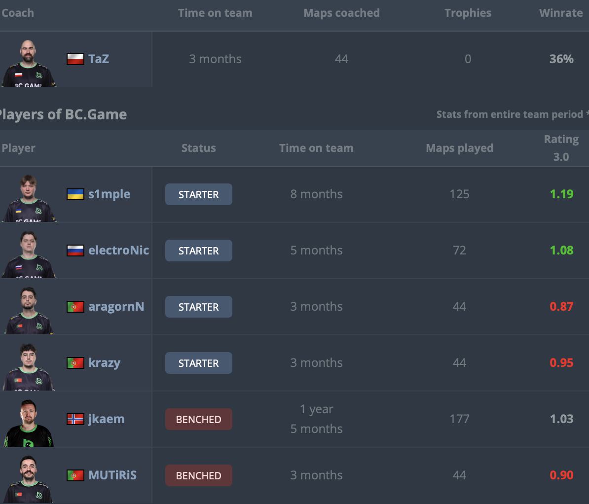 W BC.Game doszło do nieuniknionych roszad, w wyniku których na ławkę rezerwowych zostali przesunięci MUTiRiS i aragornN.